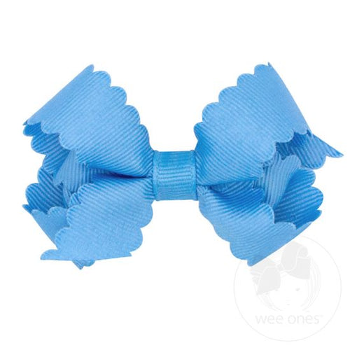 Mini Grosgrain Hair Bow with Scallop Lt Pink